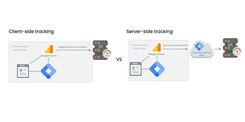 Server-side tracking is a technique for collecting conversion data from a website or an app. Unlike client-side tracking, all conversion data is collected on a own server and sent from there to a tracking platform (such as Google Analytics). In client-side tracking, all data is collected in the browser and sent directly to the respective platform.