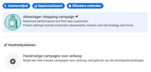 In addition to external tools that can be linked to various social media channels, there are also more and more new functionalities within platforms that are automated. For example, within Meta, “Advantage+” has been introduced.