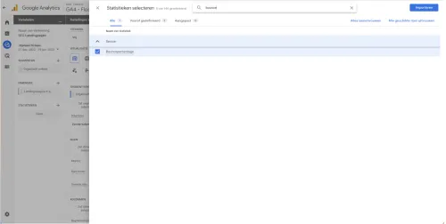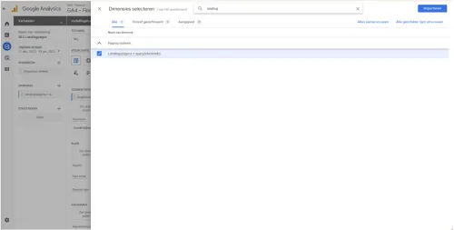 By selecting the metrics, we determine which data is displayed in the table. Beforehand, consider which data you want to have insights into from the organic landing pages. For this example, we use the following metrics: