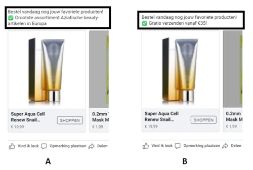 There are multiple ways you can test a text. Think, for example, of a text with emoticons versus without emoticons. Or as in this example, the difference in USPs and testing which ad delivers the most optimal result. This test was in the conversion campaign and the goal was to achieve purchases, but with which ad do we generate more purchases? Below you see what was tested and remember, it is different for everyone, but it is a nice example to show what a small adjustment can do.