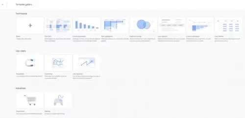 You can also choose a blank file to design your report yourself. Here too, you have multiple visualization options. This is a great advantage because it gives you more opportunities to interpret and convey your results well. You can choose from different techniques, and you can also choose funnel visualization, for example. Additionally, you can choose a free form, pie chart, line chart (where you can easily zoom in and out on date level), a scatter plot, bar charts, and a map.