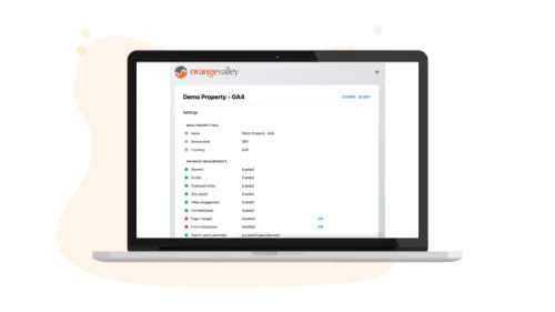 Follo has built a Google Analytics 4 implementation tool that monitors the configuration (e.g., whether all standard GA4 measurements are active, custom dimensions, metrics, and conversions are registered, and the connection with, for example, Google Ads, BigQuery, and Search Console is correctly set up). This tool not only monitors in real-time whether your implementation is still up-to-date but can also quickly update your implementation. As a result, your implementation and data quality in your account are always in order, allowing you to make decisions with confidence or activate data in your marketing channels. You can easily review in the log files which optimizations have been made.