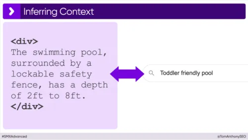 As an example, Tom pointed out that it is currently impossible to label a product, such as a children's swimming pool, as 'child-friendly' via product structured data from schema.org. However, an LLM can easily conclude from a product description like 'The pool, surrounded by a lockable safety fence, has a depth of 60 cm to 240 cm,' that the pool is a suitable result for the search query 'child-friendly pool'. Where structured data cannot make this connection, an LLM can.