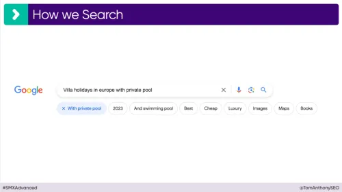 The focus is thus shifting to context-rich pages. Google is currently testing adding buttons to the search bar to specify search queries. This puts increasing emphasis on longtail keywords, as searches become more specific and thus more specific content is demanded.