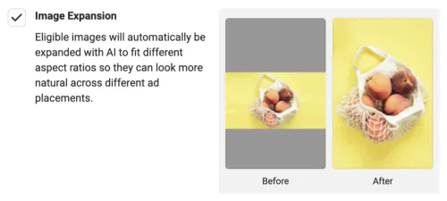 There may still be some bugs to work on, but image expansion could be an enormously valuable addition when creating your ads. If you provide a square image (1:1), Meta can automatically expand it to, for example, a vertical format (9:16) using AI!