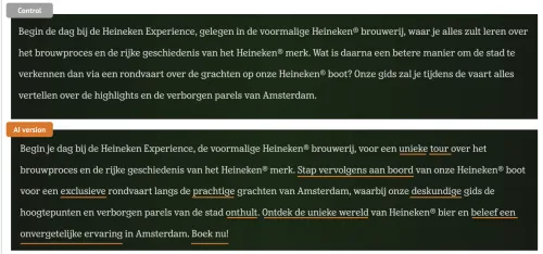 Before you start optimizing, it's important to know what is already going well and what can be improved. With the help of AI, you can analyze the current text and gain insight into which words and sentences work well and which do not. This way, you can make targeted adjustments that lead to more conversions.
