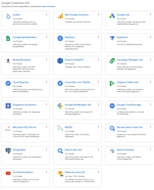 Google Looker Studio offers integration with Cloud-based services like Google Cloud Platform, Amazon Web Services (AWS), and Snowflake. However, compared to Power BI, Looker Studio itself offers less support for different types of data sources. There are 23 different connectors that are built and supported by Looker Studio. However, there are 730 connectors that are built and supported by Looker Studio Partners. To use these connectors, you usually have to pay. Although Looker Studio does have the ability to create these custom connectors, it may offer less flexibility than Power BI in this context.
