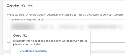 We see the new search themes for Performance Max as a positive development where we can provide more signals to the Google Ads algorithm. To get the most out of the new 'search themes', it is important to closely monitor the performance of your ads. Google's AI can be powerful, but your expertise remains essential for selecting the right themes and creating engaging content.