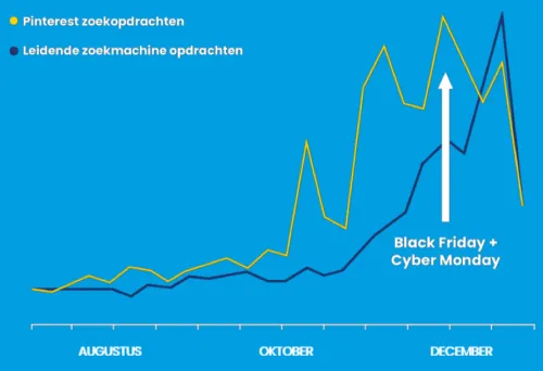 Pinterest is a platform where people find inspiration and come up with ideas. Inspiration is also found for holiday gifts. As seen in the graph, Pinterest searches lead the way over leading search engine queries. This indicates that Pinterest can be an interesting platform to make the first connection with potential customers. In this way, Pinterest can be a valuable addition to your Black Friday or holiday strategy.