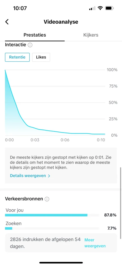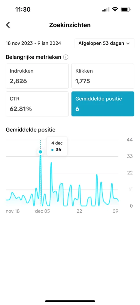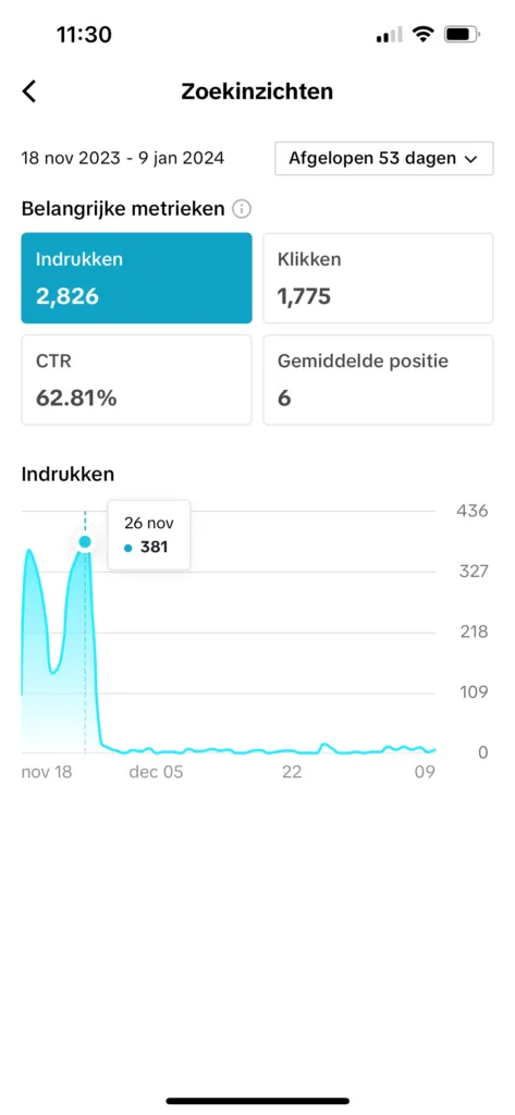 Ideal if you want a quick answer to a question. But are you active in posting TikToks yourself? Then you now also get insights into the search results of your organic posts. When enough data is collected, you can also obtain other insights such as: